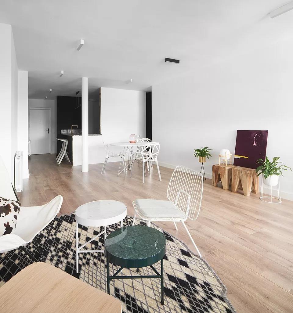 对于中间出现的柱子,我们不那么纠结了,更在乎开放式设计带来的快感与舒适,当然,通过设计手法的处理,也可以合理化解柱子带来的尴尬。