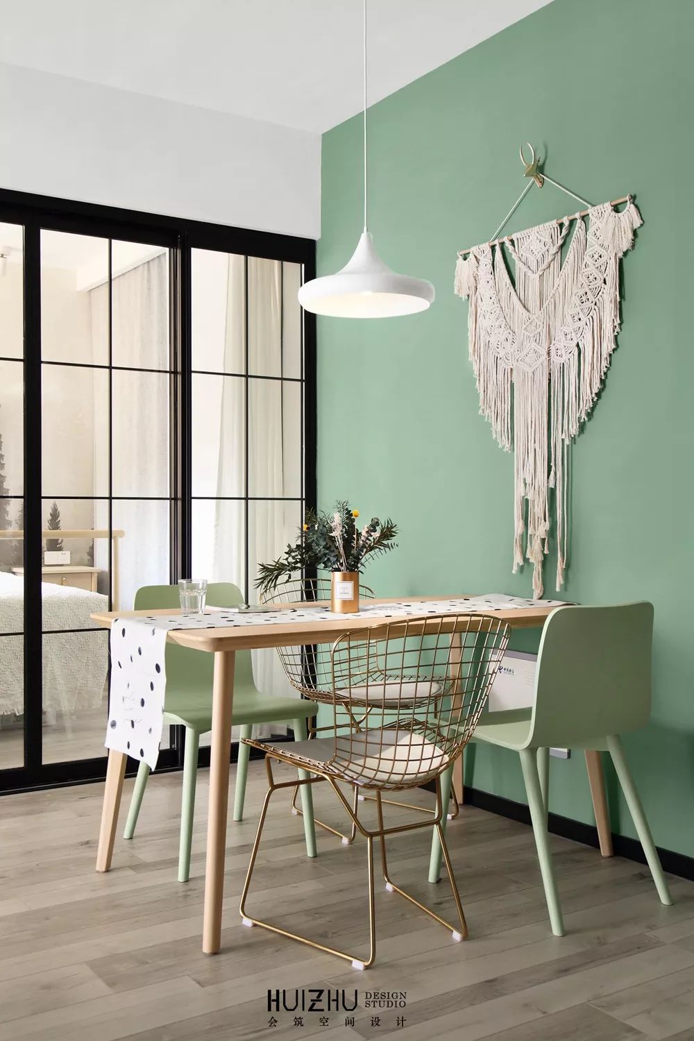心灵手巧的女主,自己手工编织了壁挂挂毯装饰了餐厅空间。