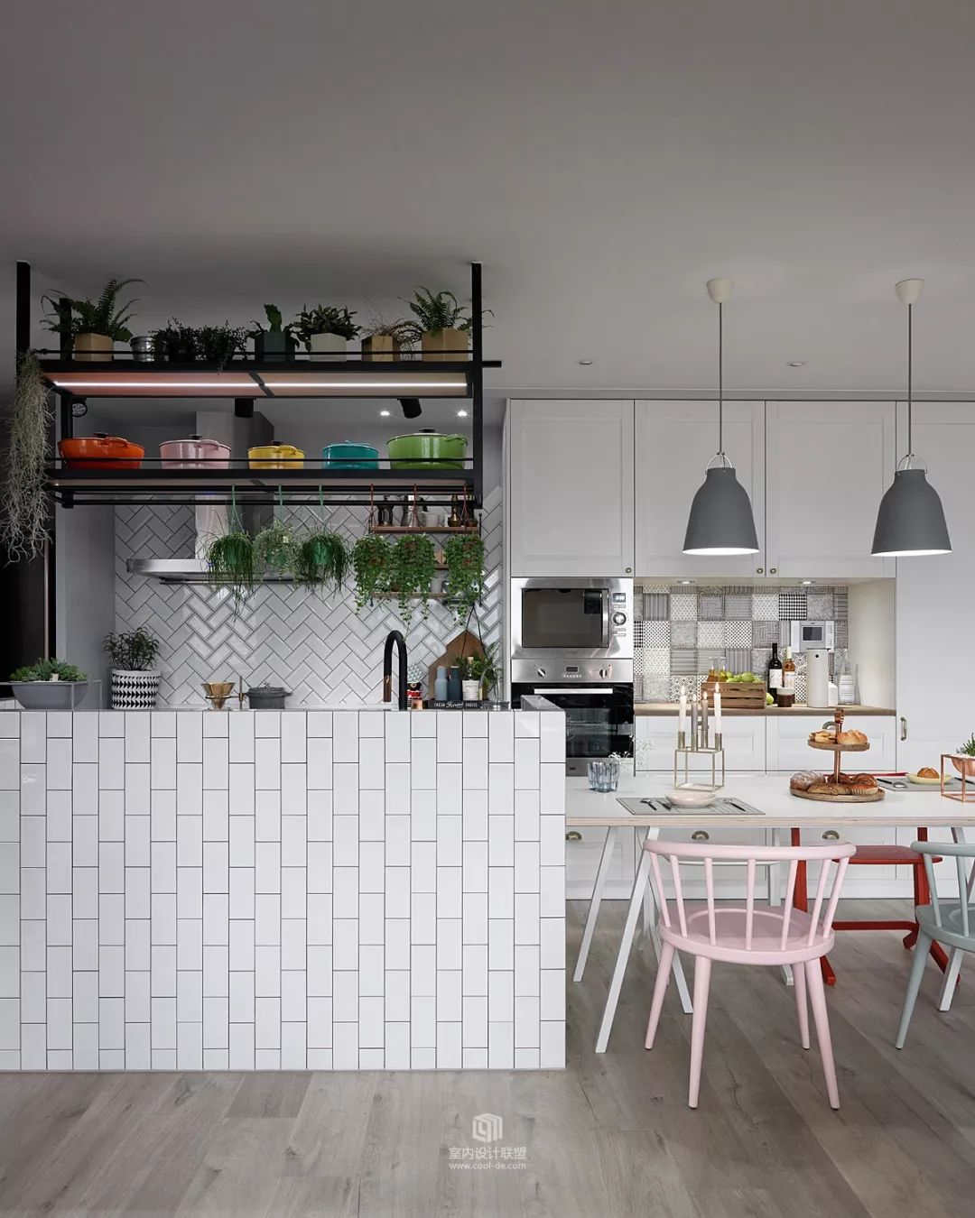 开放式厨房,节省了空间。坐在客厅中,既有看得见的舌尖美味,又有闻得到的人间烟火。空间上的交互性在这里体现的淋漓尽致。